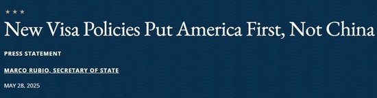 同日,美国国务院网站发布题为“新签证政策优先考虑美国,而非中国”的声明。